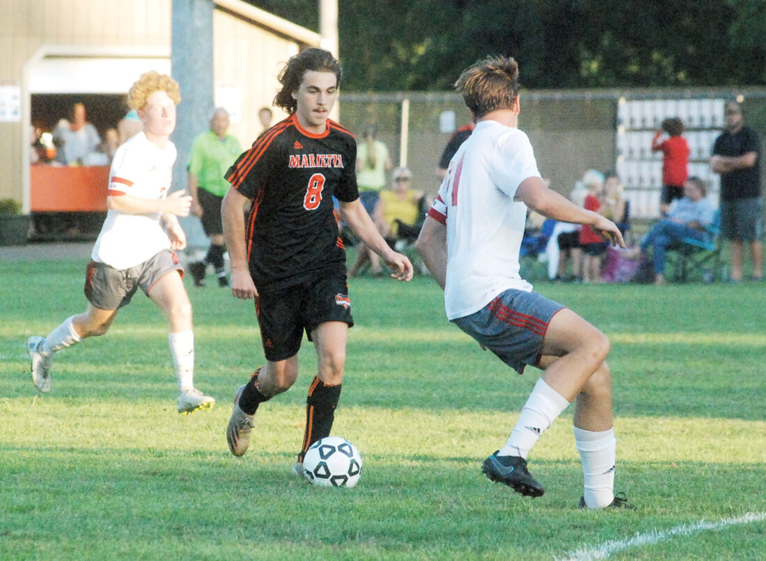 DEVOLA — Marietta Boys’ soccer team’s Dillon Meagle and his teammates were still in high spirits after Tuesday’s 2-1 loss to Athens in the season opener.