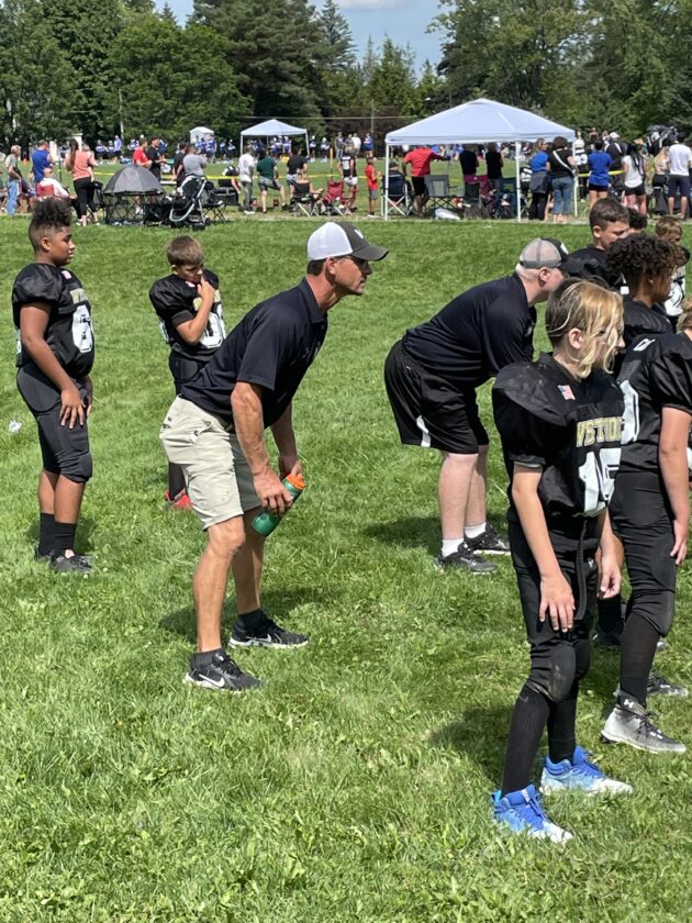 Westside Panthers coach Jamie Bloomquist is pictured coaching his team before Saturday’s game.Photo of PJ by John Whittaker